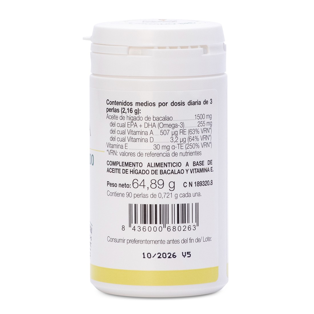Cod Liver Oil – 90 Pearls. A supplement of Vitamin D, A and omega-3 fatty acids, particularly EPA and DHA.