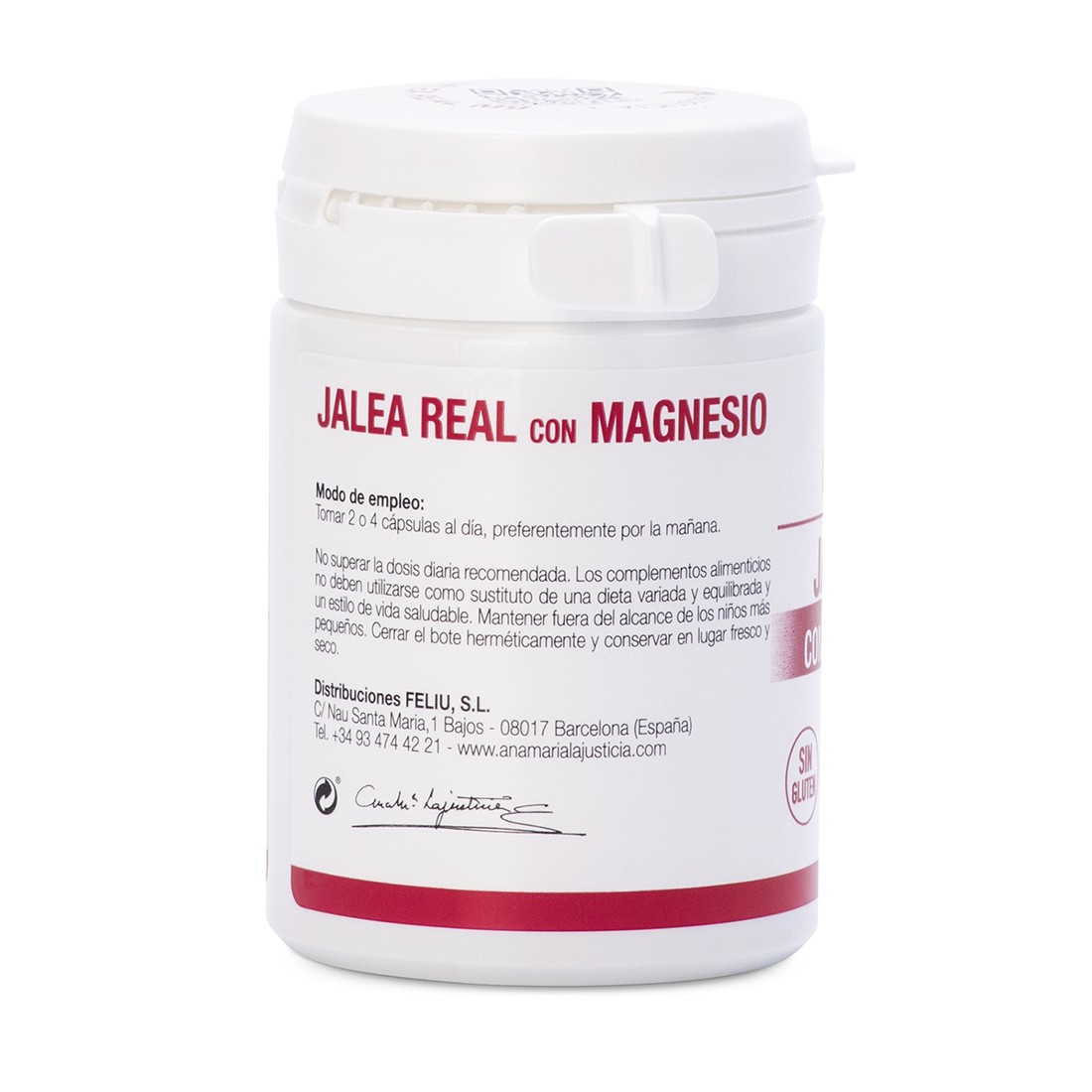 - 2 capsules (1.04 g): Royal jelly 300 mg, Magnesium 120 mg (32% NRV*).