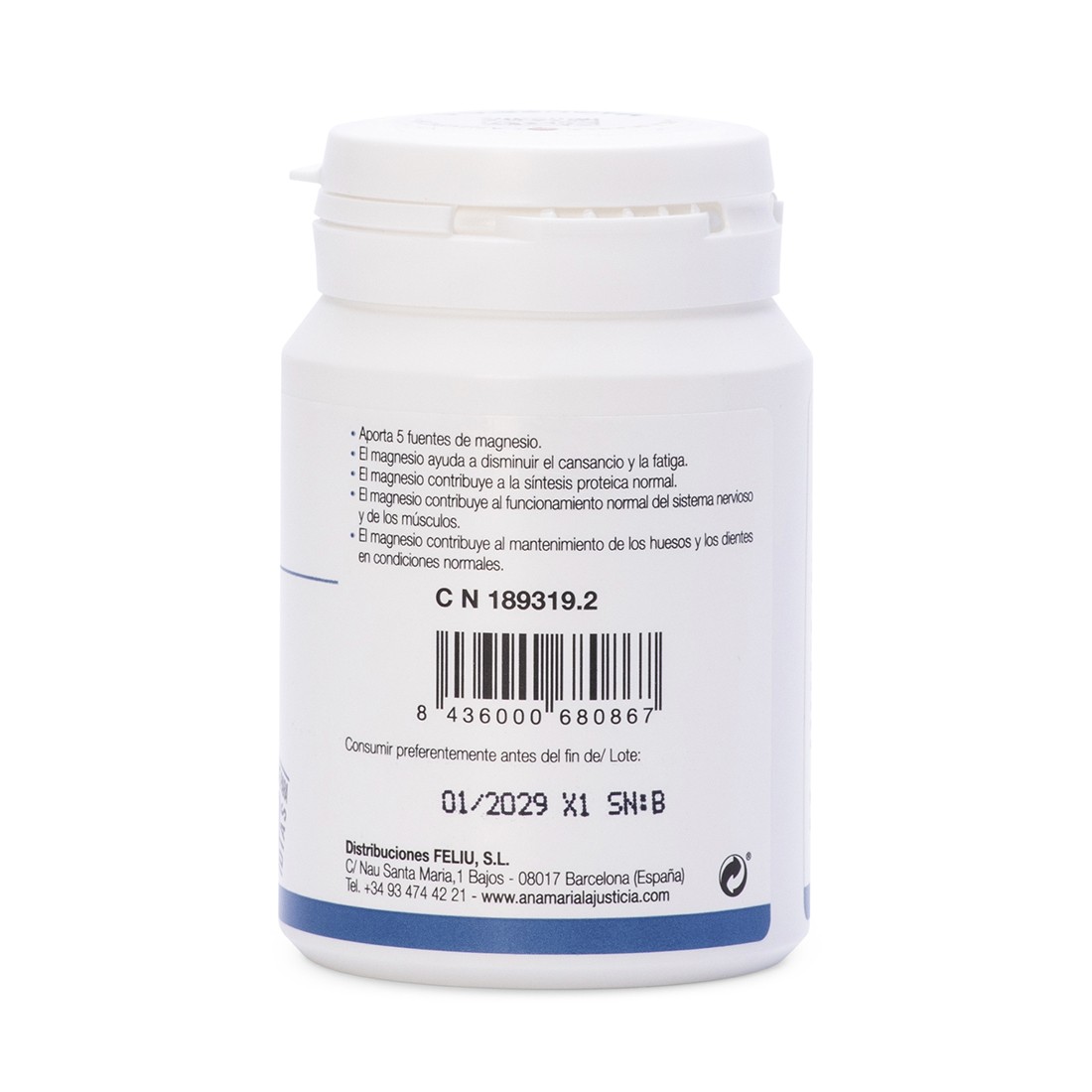 Magnesium Total 5 – 100 Tablets. A blend of 5 magnesium sources. Reduces tiredness and fatigue and improves the functioning of the nervous and musculoskeletal systems. With a neutral laxative effect.
