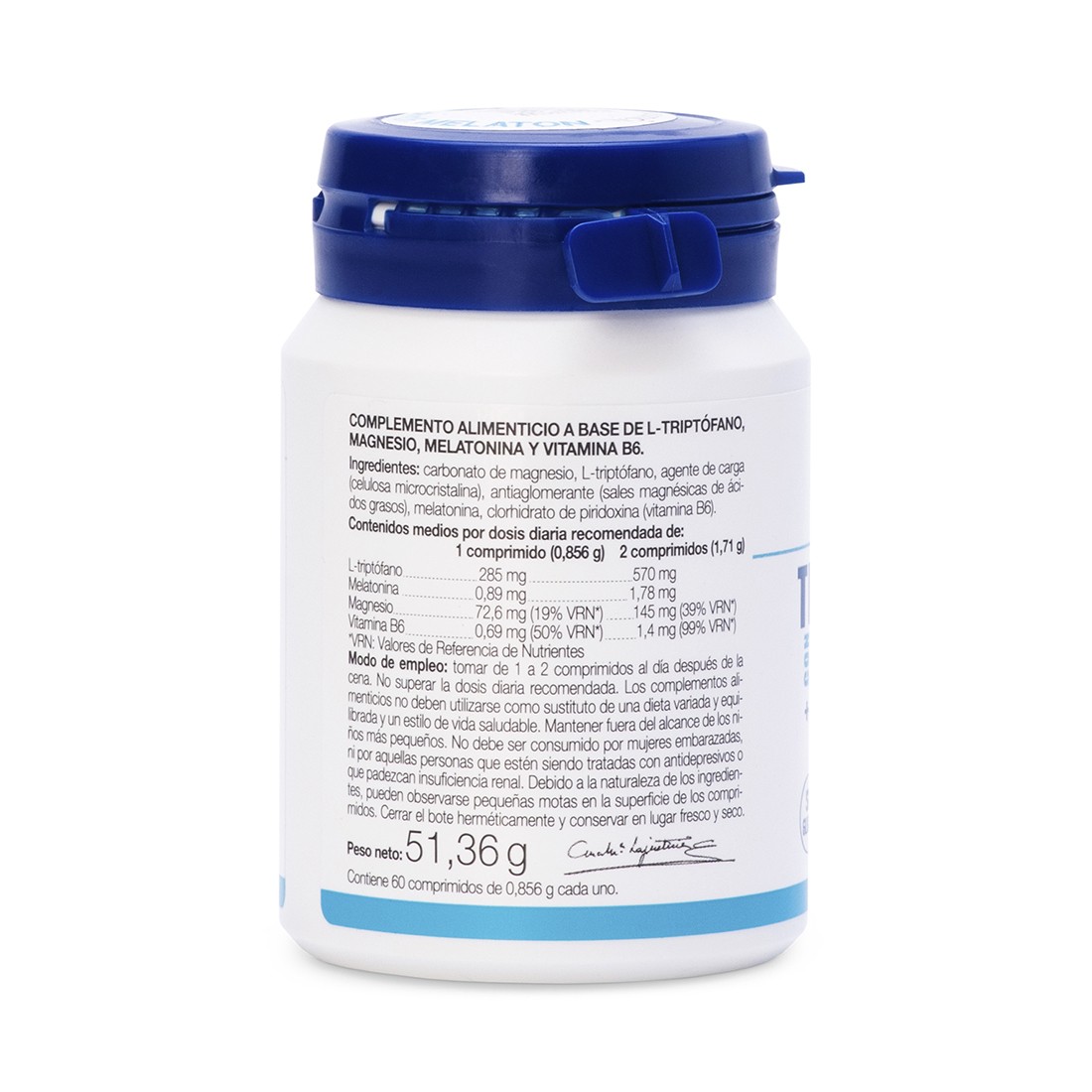 Tryptophan with Melatonin + Magnesium and Vitamin B6 is a dietary supplement that contributes to improving rest and the natural circadian rhythm of the body and mind.
