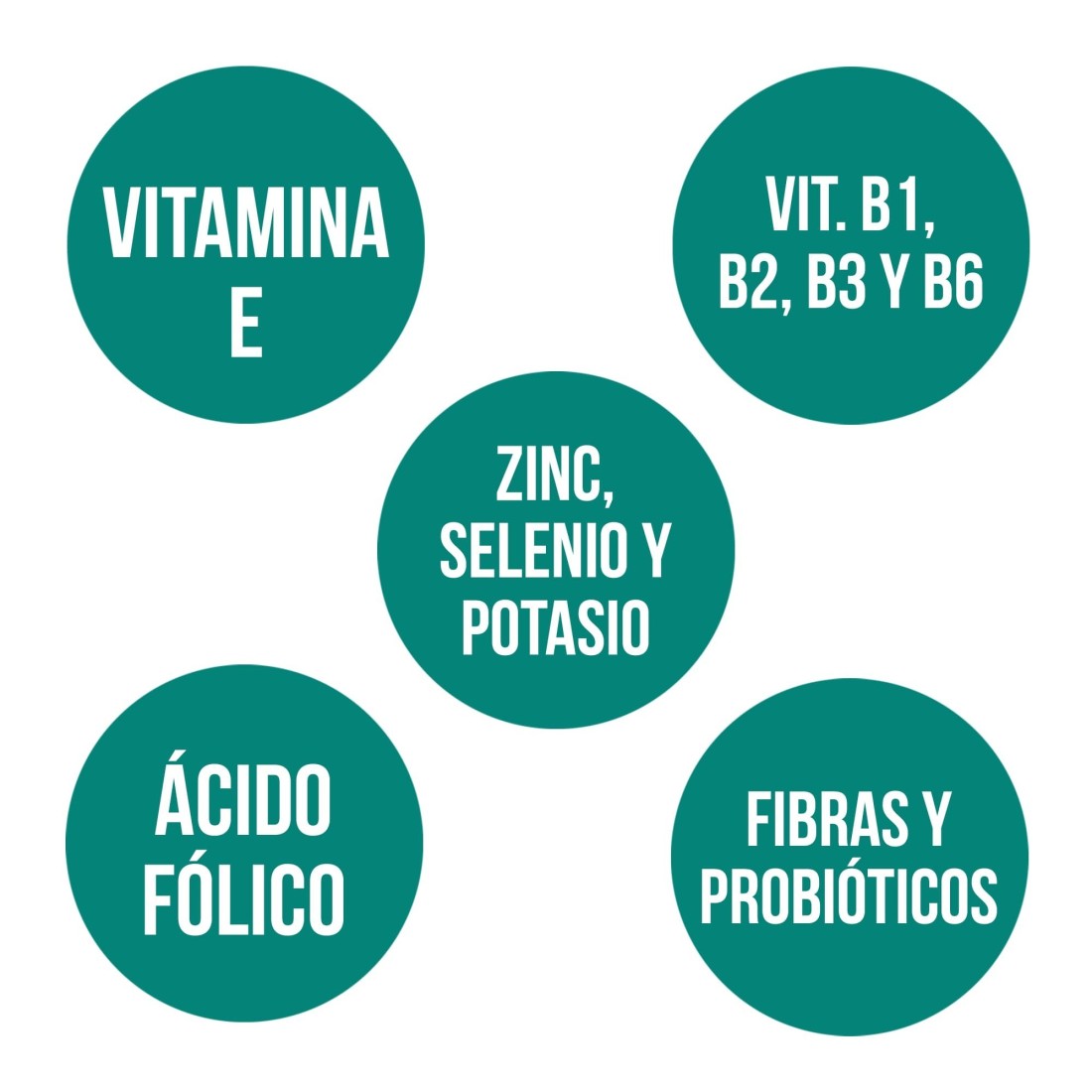 - 4 tablets (3.4 g): Brewer’s yeast 2 g, wheat germ 0.84 g, thiamine 0.25 mg (23% NRV*).