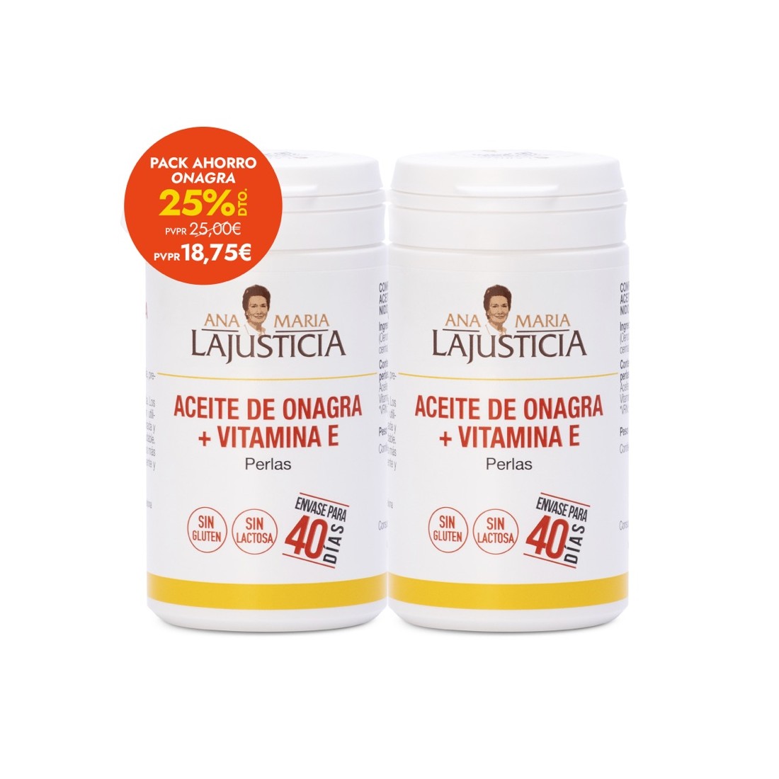 Pack of 2 units of Evening Primrose Oil + Vitamin E – 80 pearls. An excellent supplement for relieving premenstrual syndrome symptoms (pain, swelling, mastalgia, etc.). Vitamin E contributes to protecting cells against oxidative damage.